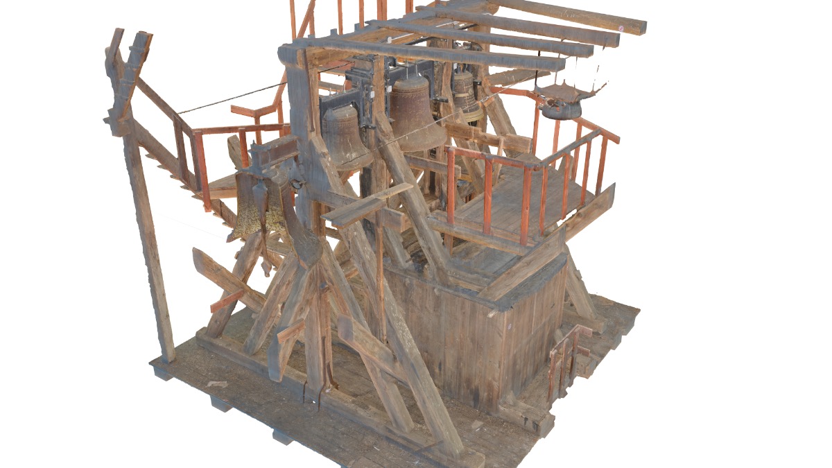 Zawieszony jest na specjalnej konstrukcji wsporczej z masywnych drewnianych belek stabilizowanych zastrzałami. Dzwon pozbawiony korony z kabłąkami został spięty śrubami do stalowego zawiesia.