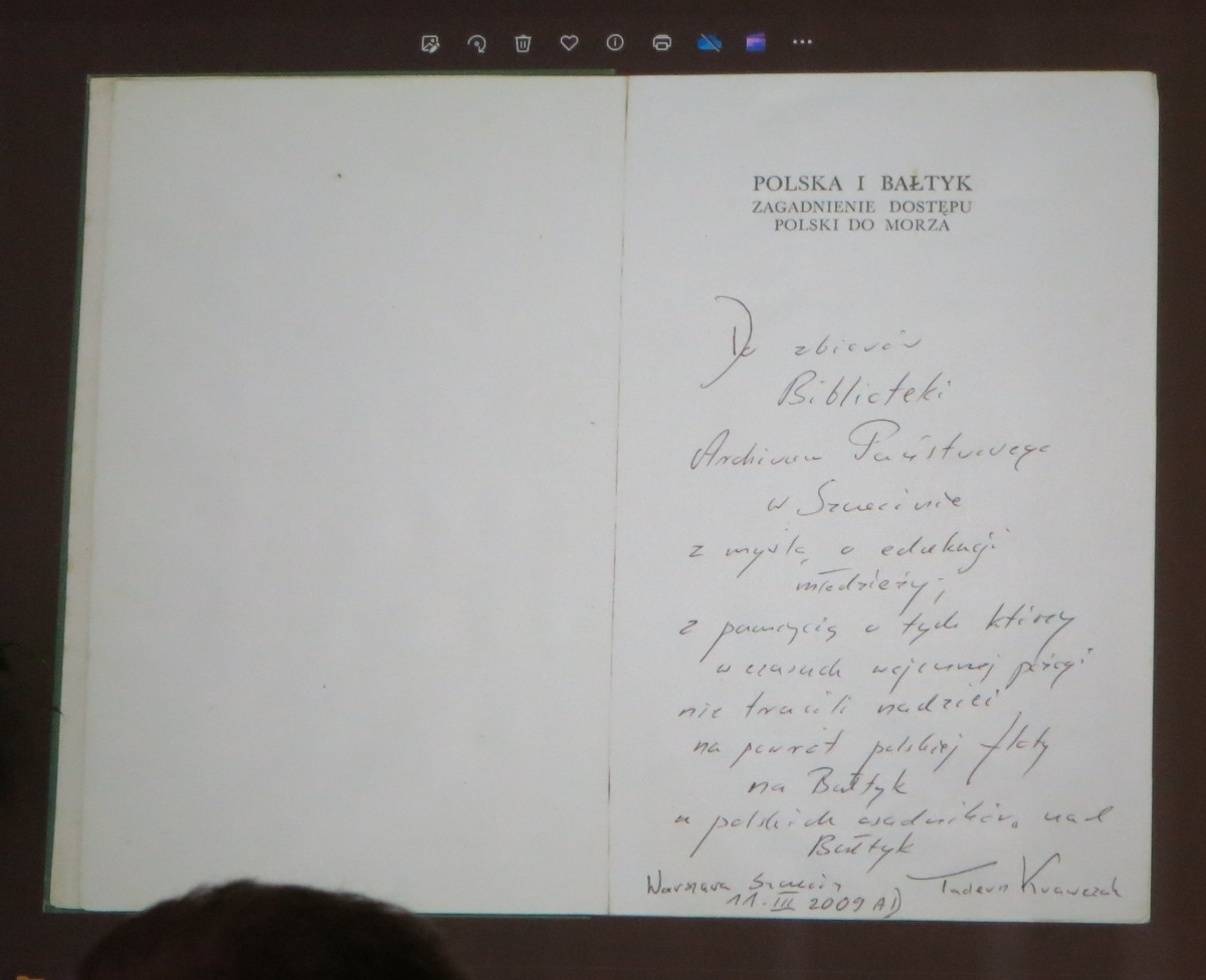 Oficjalne przekazanie archiwaliów uwieczniły podpisy darczyńców i dyrektora szczecińskiego Archiwum – dr hab. Krzysztofa Kowalczyka.